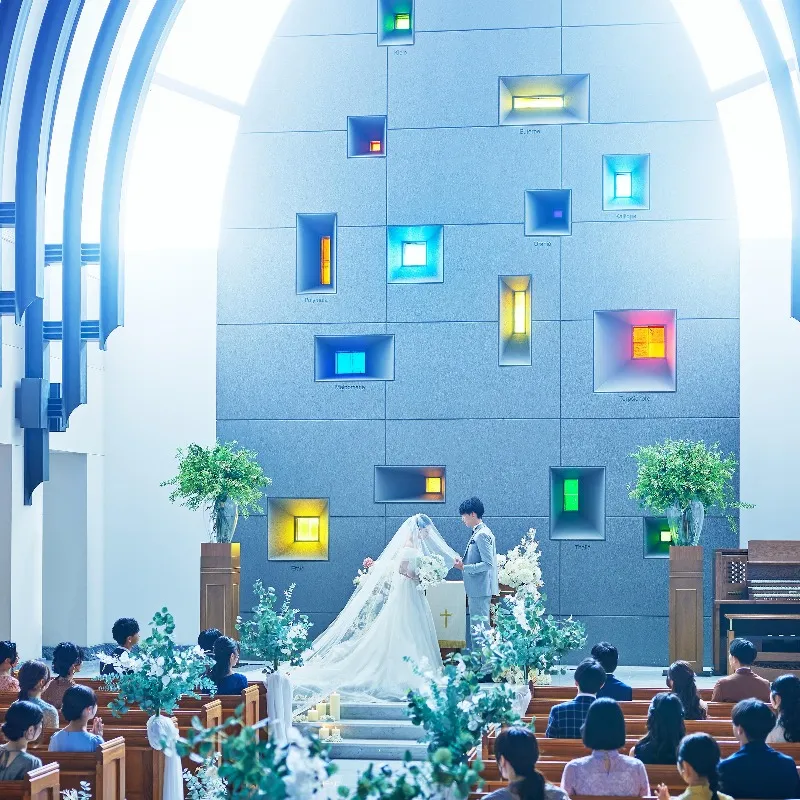 【初見学のおふたりに豪華特典!全館見学/試食/相談会♪】当館先輩カップル人気No1!天高12mの光注ぐチャペルとガーデン付パーティー会場体験*最新トレンドのドレス見学も可能♪もちろんお悩みや見積り相談