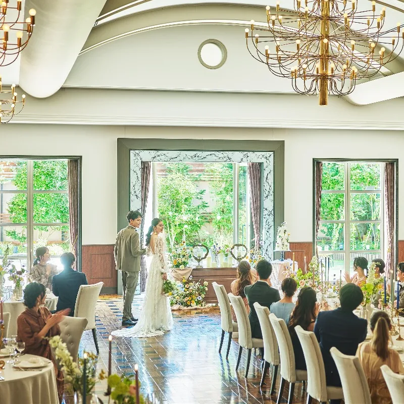 【初見学のおふたりに豪華特典!全館見学/試食/相談会♪】当館先輩カップル人気No1!天高12mの光注ぐチャペルとガーデン付パーティー会場体験*最新トレンドのドレス見学も可能♪もちろんお悩みや見積り相談