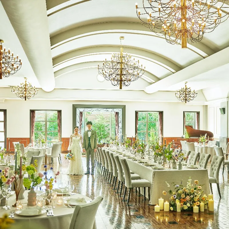 【初見学のおふたりに豪華特典!全館見学/試食/相談会♪】当館先輩カップル人気No1!天高12mの光注ぐチャペルとガーデン付パーティー会場体験*最新トレンドのドレス見学も可能♪もちろんお悩みや見積り相談